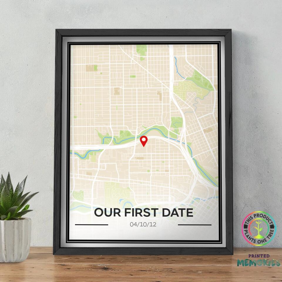 First Date Gifts Map Print, Personalized First Anniversary Gift
