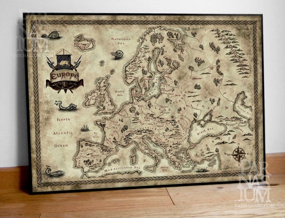 Fantasy Styled Map of Europe Fantasy Gift Map Geek Gift Etsy