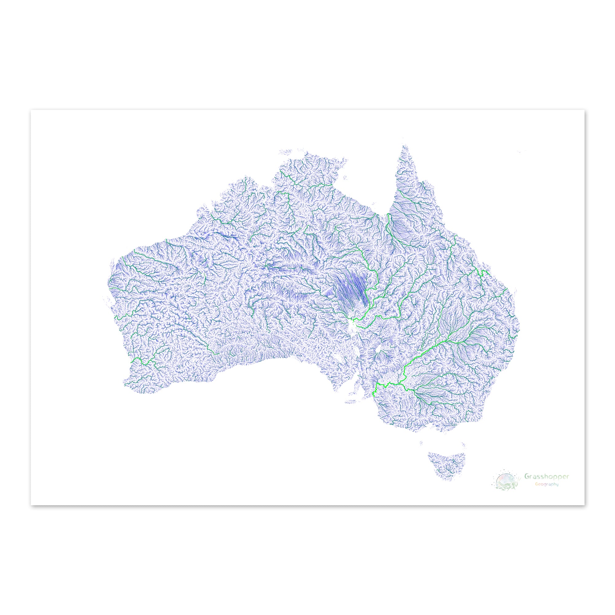 Australia Blue and green river map on white Fine Art Print
