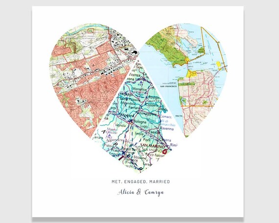 Romantic Gifts for Her Custom Map Heart Print Miniature Wall Etsy