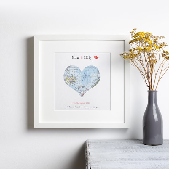 Personalised Map Heart Picture Frame, Customised Map Print, Framed