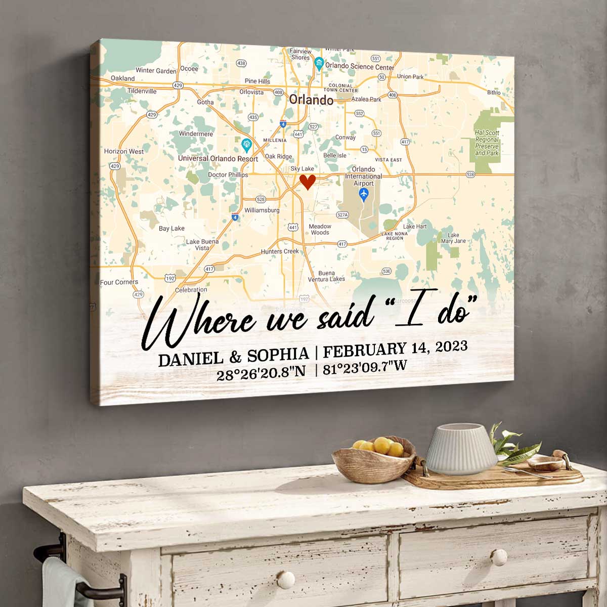 Personalised Map Print, Where We Said I Do Location Gift, First