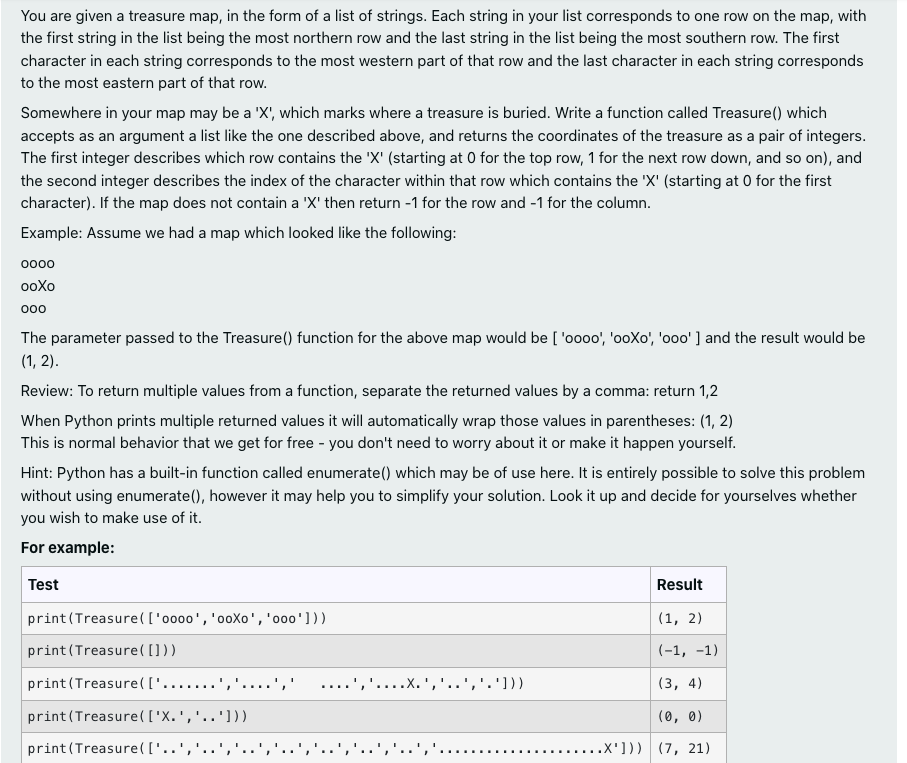 Solved You are given a treasure map, in the form of a list | Chegg.com