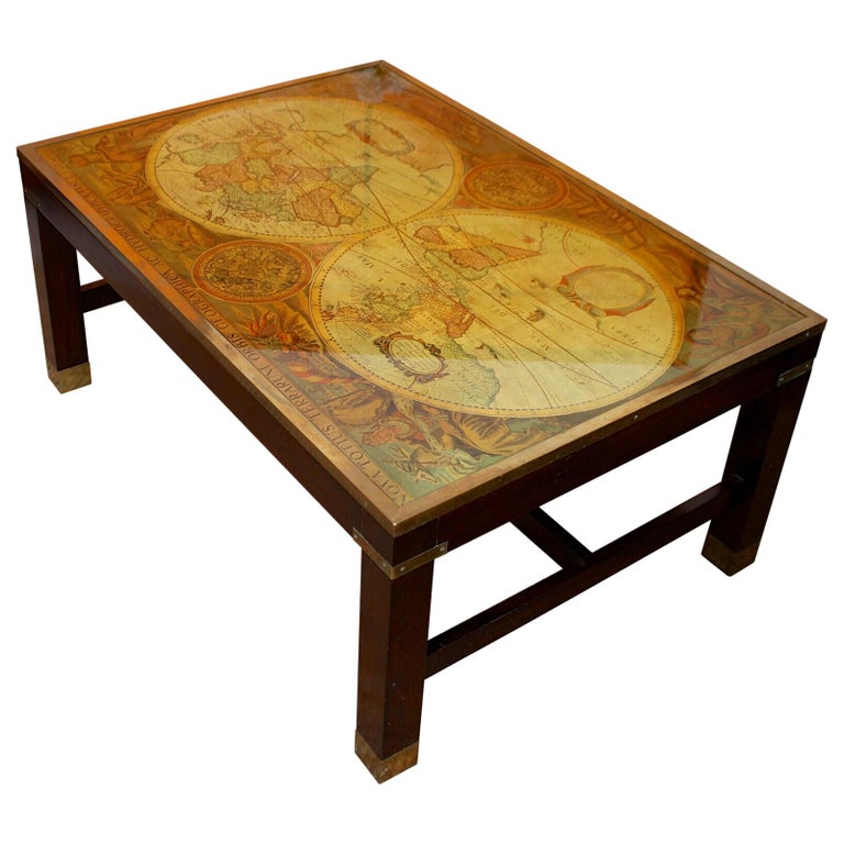 Vintage World Map Coffee Table by Maison Jansen at 1stDibs
